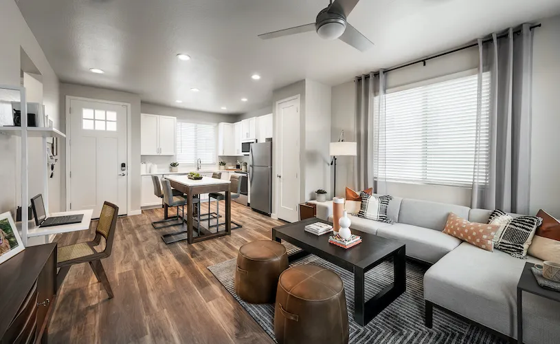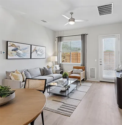 At Village at Hutto Station, we combine modern comfort with resort-style living in Hutto, TX. Our single-story homes feature smart home technology, quartz countertops, luxury vinyl tile flooring, full-size washer and dryer, private backyards, and upgraded kitchen appliances. Enjoy our secure, gated community amenities like a sparkling pool and sundeck, fire pits, BBQ grill stations, clubhouse, and fitness center. Our pet-friendly community has an oversized dog park, pet spa, and is conveniently located near shopping and entertainment. This is where your best life beginsāschedule a tour today!